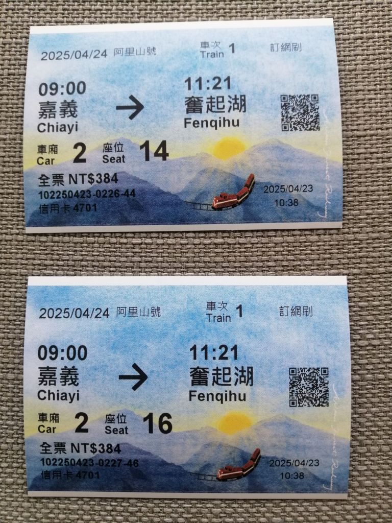 I tried booking (14 days in advance) from Chiayi to Fenqihu on the first minute, but was unsuccessful. Reason, priority is given to Chaiyi to Alishan journey. (A pop-up message informing this will appear when booking). Managed to book online , Chiayi to Fenqihu 12 days earlier (Alishan to Zhusan, as well). One day before departure to Fenqihu, tickets from Fenqihu to Alishan were still not available. Unexpectedly, were available later in the day (2 days before departure date)! So, don’t despair.