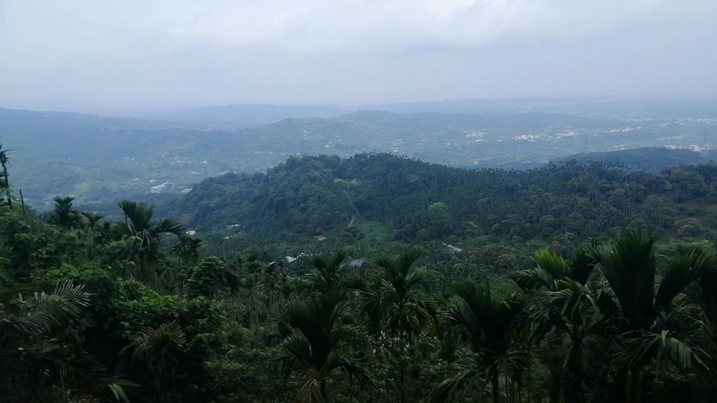 Elevation gain was palpable as the train skimmed past cut slopes as the train wound through cut slopes, tunnels, and road crossings. Hazy views opened onto forests, bamboo thickets, and valleys, punctuated by slender betel nut palms. Mululiao Station (324 m), fenced and overgrown, felt abandoned. Dense forest dominated both sides, with occasional glimpses of towns far below. Camphor trees, once abundant here, are now rare, though a few remain near Zhangnaoliao Station (543 m), which sits on a Z-shaped switchback.