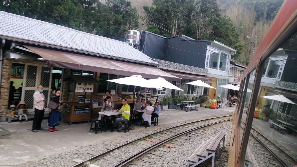 The familiar screech and sway accompanied us past small settlements. At Duolin Station (1,516 m), double tracks allowed a downhill train to pass. Cypress forest dominated the slopes, with bamboo, shrubs, and scattered tree ferns as the elevation increased. Near Shizilu Station (1,534 m), home to Tabangu and Tfuya tribal communities, cafés clustered close to the tracks.