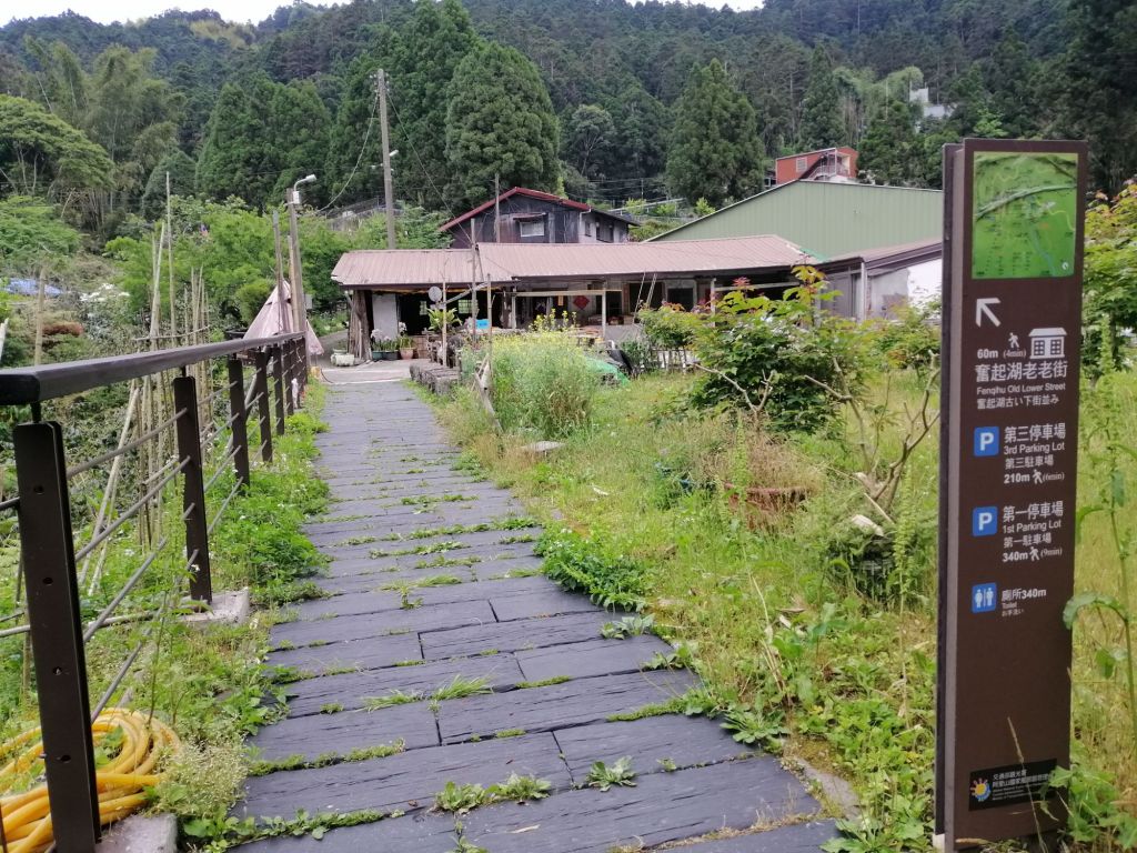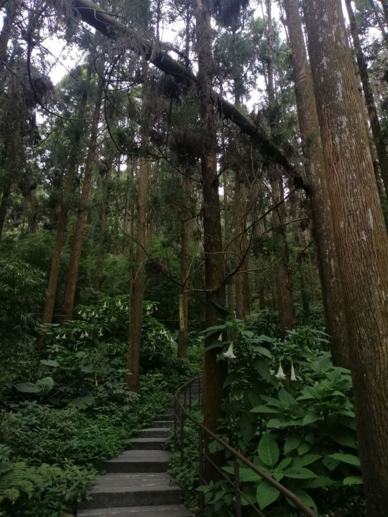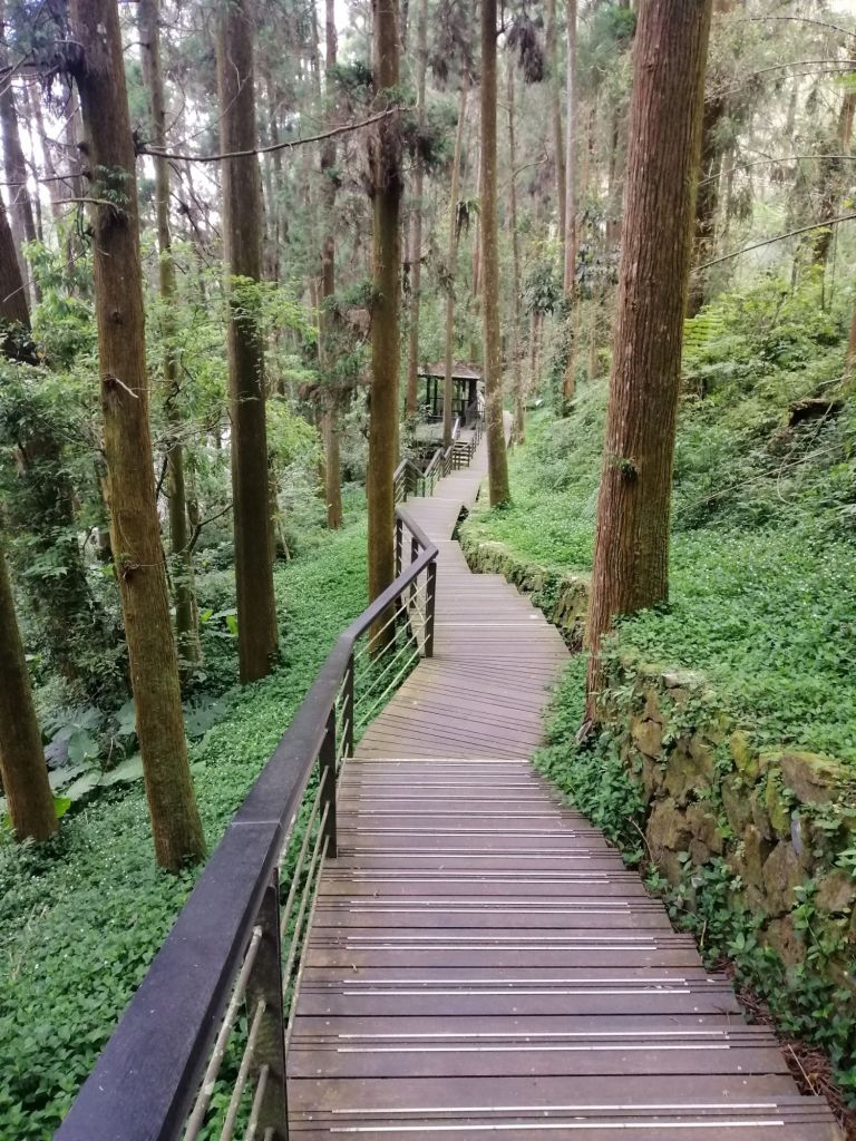 We later joined a small hotel-organized hike. A trail behind the garage led uphill to the Fenqi Trail, passing replanted cedar forests, tall bamboo groves, and ruins of a Shinto shrine near the inaccessible Luding Giant cedar tree. We switched to the Fenrui (Fenqihu-Ruili) Historic Trail. It was already late, after 4pm. As fog thickened and daylight faded, we turned back after about 2 km. The trail was uphill, narrow and unkept, although assessable.