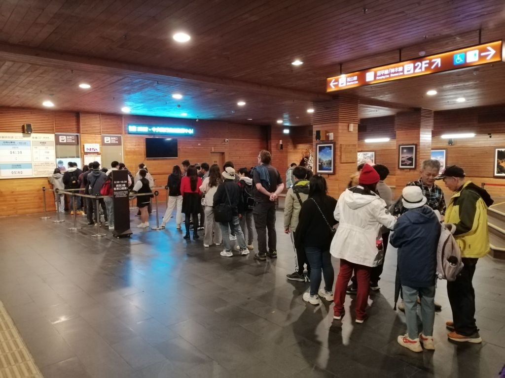 The next morning, we rose early for the sunrise train to Zhushan. The ticket counter opened at 4 a.m., already with long queues. The first train departed at 5 a.m. in cold darkness, timed for a 5.40 a.m. sunrise. We arrived at Zhushan Station (2,451 m), Taiwan’s highest, at 4.45 a.m. The modern station has food stalls and several viewing points (Duigaoyue Sunrise Platform and Zhusan Observation Deck) . I chose the Xiaoliyuanshan Lookout, a short uphill walk.