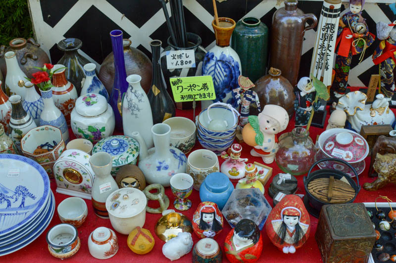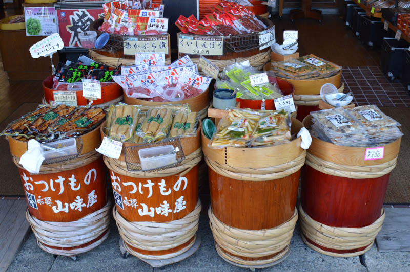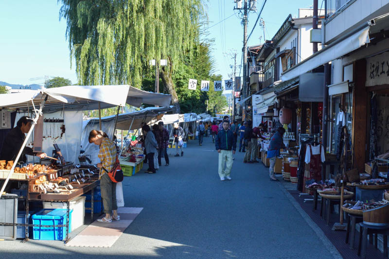 We only managed to stay in Takayama for one night. There are two morning markets, “asaichi” in Takayama. We managed to arrive early at Miya- gawa morning market set beside the Miya-gawa River under cheery trees next to the red Kappabashi Bridge. Although small, it was atmospheric.