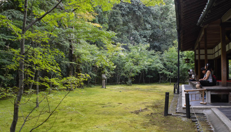 Seated on the veranda below a wooden hanging lamp, I found tranquility. I imagined living here surrounded by natural beauty and the lack of modernity. The visual effect of this Zen garden is addictive. For the moment, Kōtō- in Temple is a green garden. On one wall was the “tokonoma”, the main alcove with an “ikebana” arrangement on a raised platform. This is certainly a heart-warming place. Such is the magnetic appeal of these rustic wooden temples and their surrounding manicured gardens.