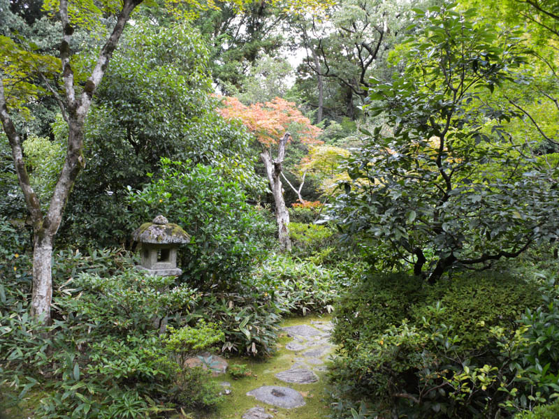 It was built in 1601 by Hosokawa Tadaoki, a Samurai who was also a tea master. We entered Kōtō – in through a rustic wooden gate that framed young Japanese maple, “Momiji” trees, which are used extensively in the foreground and matured bamboo in the background. The ground is covered with a carpet of velvety moss. The path is on a long but segmented stone pathway. With each turn, the width, depth and dimensions gave a different perspective. All these are intentionally designed to create distance, space and symbolic to the trials and tribulations of life and the spiritual path. It requires the visitor to slow down and observe a specific ‘framed view’. Clay tiled roof were encrusted with moss as on the ground. The twisted path, “roji” led from the garden entrance to the “Hojo”, main hall. The main garden, at the “Hojo”, is sparsely planted with a few maple trees, a single stone lantern and in the background a living grey-green wall of bamboo. The level foreground is covered with a carpet of moss. Comparatively, this front garden design accentuated simplicity. The moss encrusted stone lantern created