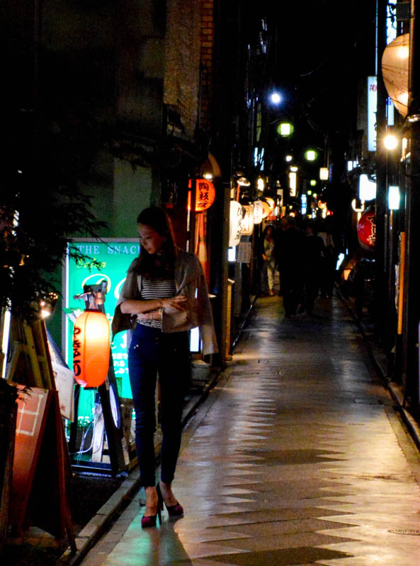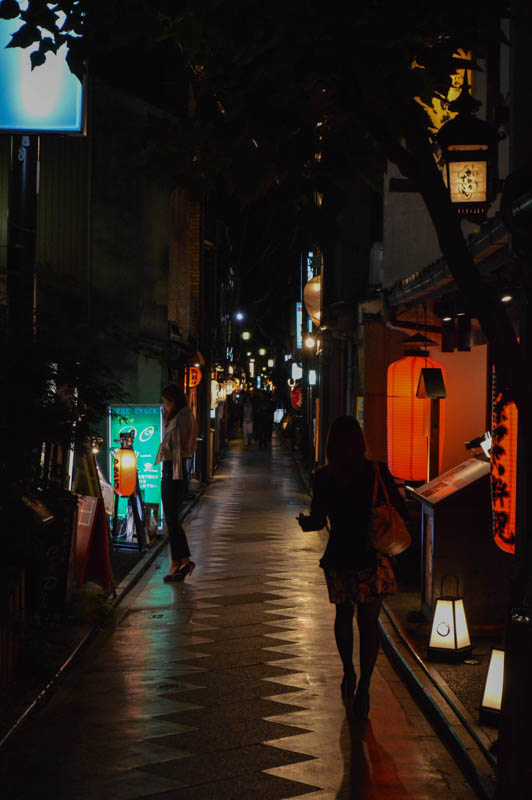 We continued our stroll down the wonderful street. Little streets branched off leading to various establishments including karaoke and bars. We entered a main street with a canal lined with weeping willows. Soon, we were back in the din of Kyōto City. Pontochō is essentially a must see sight in Kyōto both for ambiance, old world charm and delicious food. This is our last night in Kyōto before we head to the first ancient capital of Feudal Japan, Nara. Today, unfortunately, there was no encounter with the beautiful geisha.