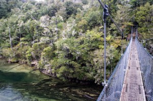 Around 9am, we crossed a wonderfully clear Falls River via a suspension bridge. Sunken logs clearly visible under water with old man’s beard (lichen), hung off trees on the river banks. Towards the later part of the track, it drizzled lightly. It became darker under the trees, shrubs and tree ferns canopy. Having left early this morning meant we arrived early at our hut at Bark Bay, around 1115. It was high tide. Collected out pack from the beach near the camp sites. It was slightly wet from the late afternoon drizzle. Bark Bay hut had 34 bunks. I took a quick cold shower, courtesy from a hose. Time for some lunch and rest. The day stayed gloomy and the sky grey. The resident DOC staff, Phill, was a humorous guy with lots of information and wise cracks. We managed to get a ‘private room’.