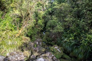 There is an open expanse of sand and mud at Torrent Bay Inlet. A stream of water flowed out to sea that must be negotiated. Probably from Cleopatra’s Pool and Torrent River. At places, it was just below my knee. We waded through the inlet in about 20 minutes. That led us through a quiet Torrent Village. They were perhaps holiday homes. It was a substantial village. From here-on the track meandered inland passing through several streams. The lush forest kept hiking cool.
