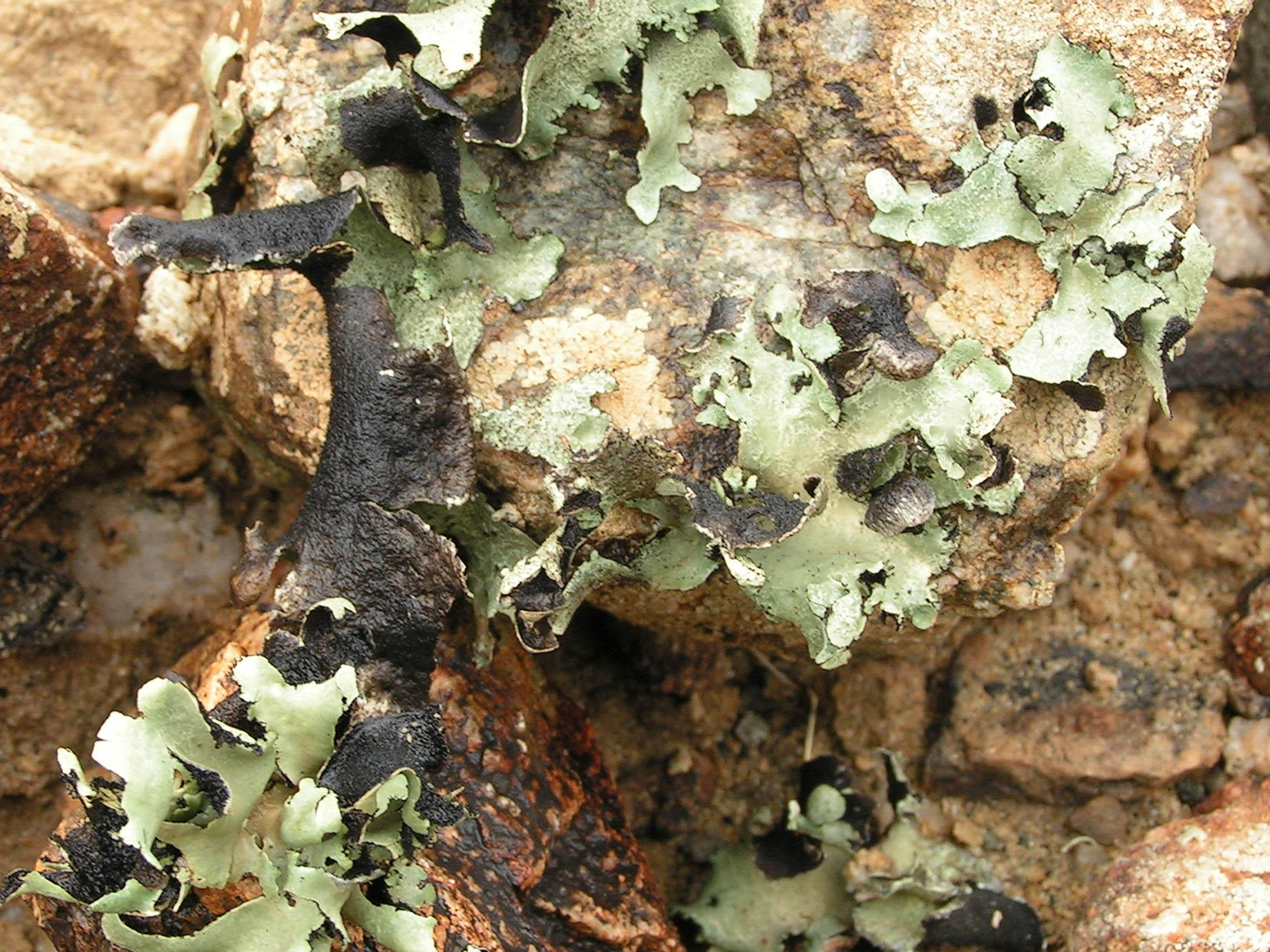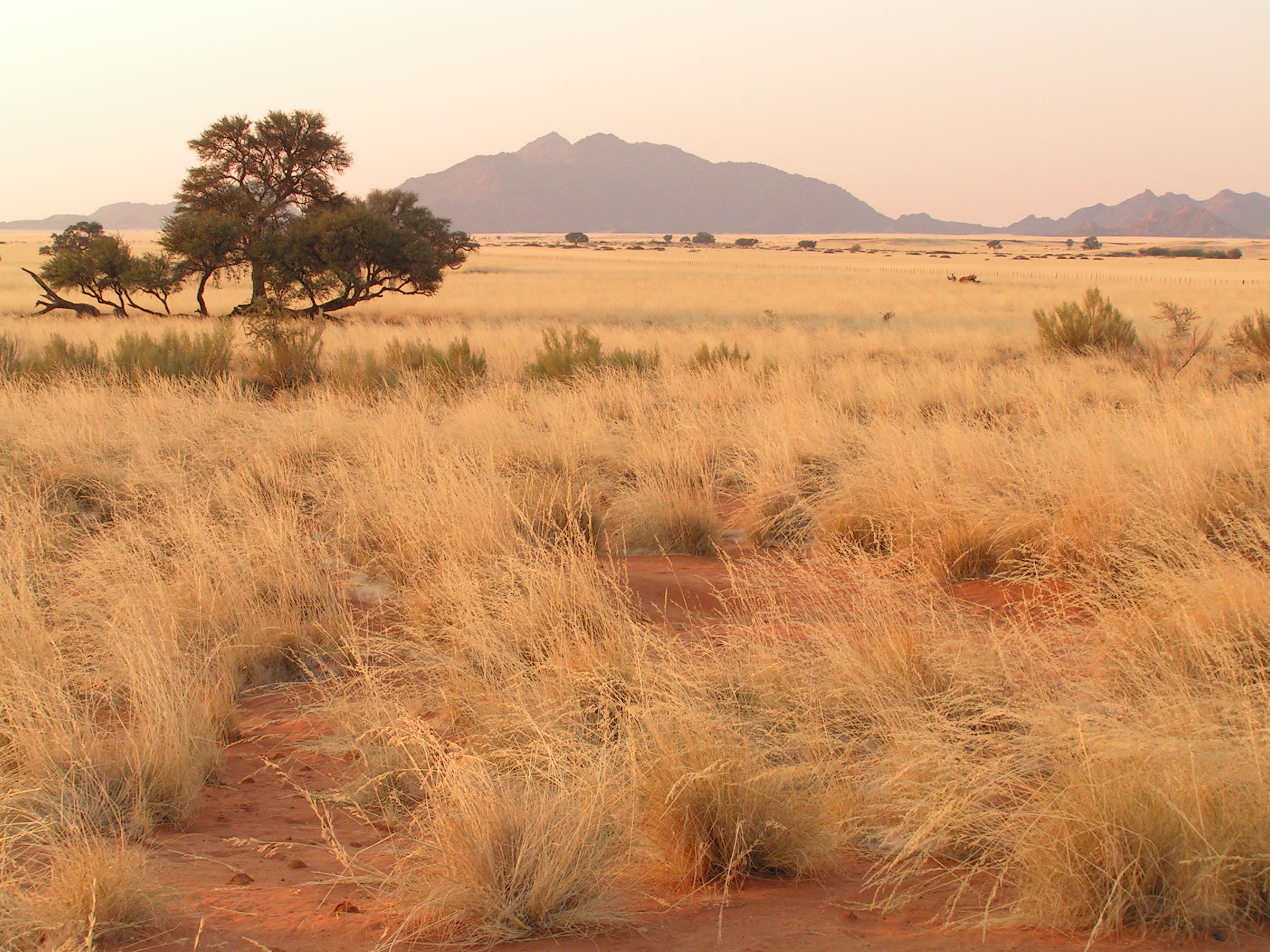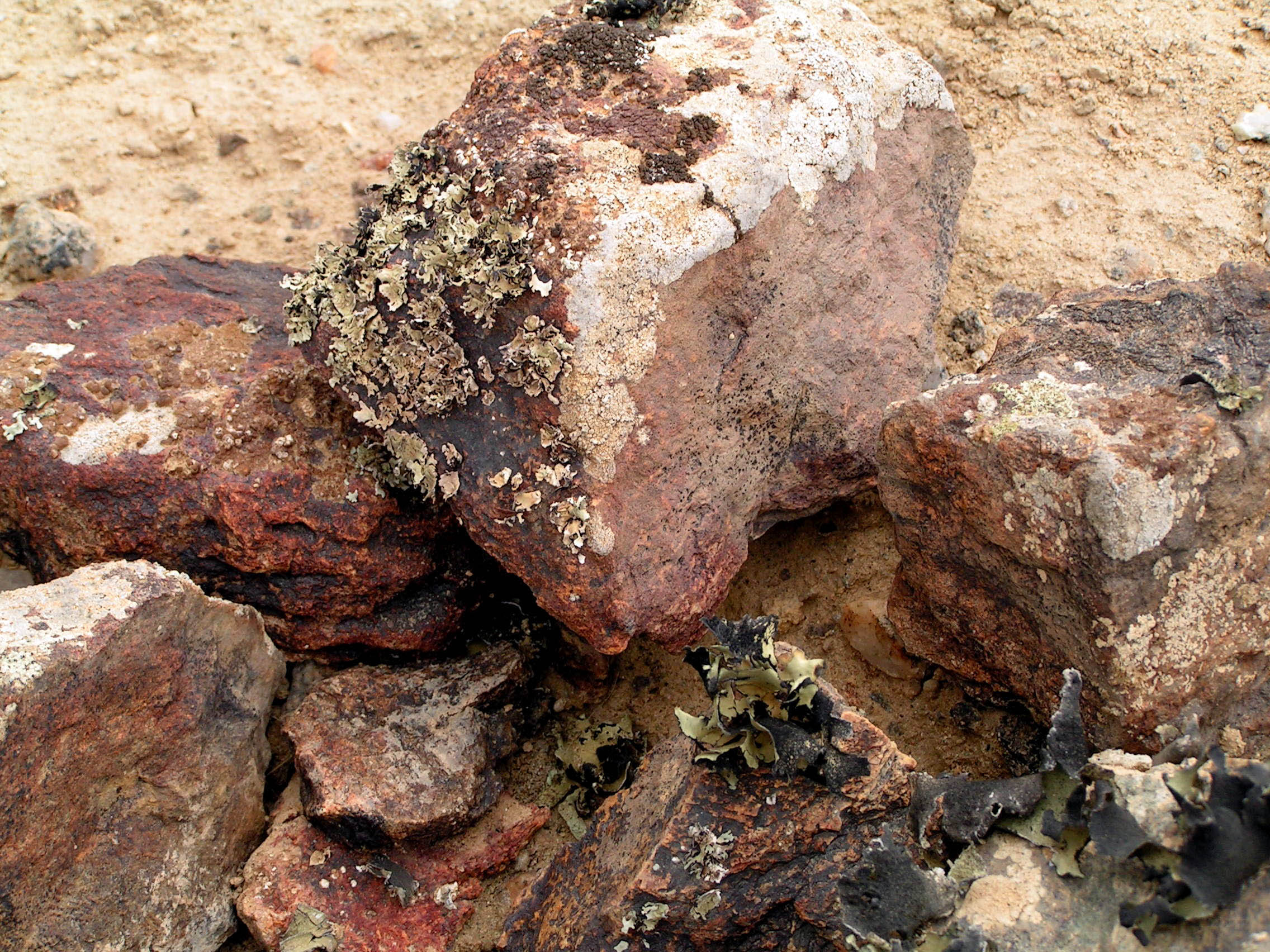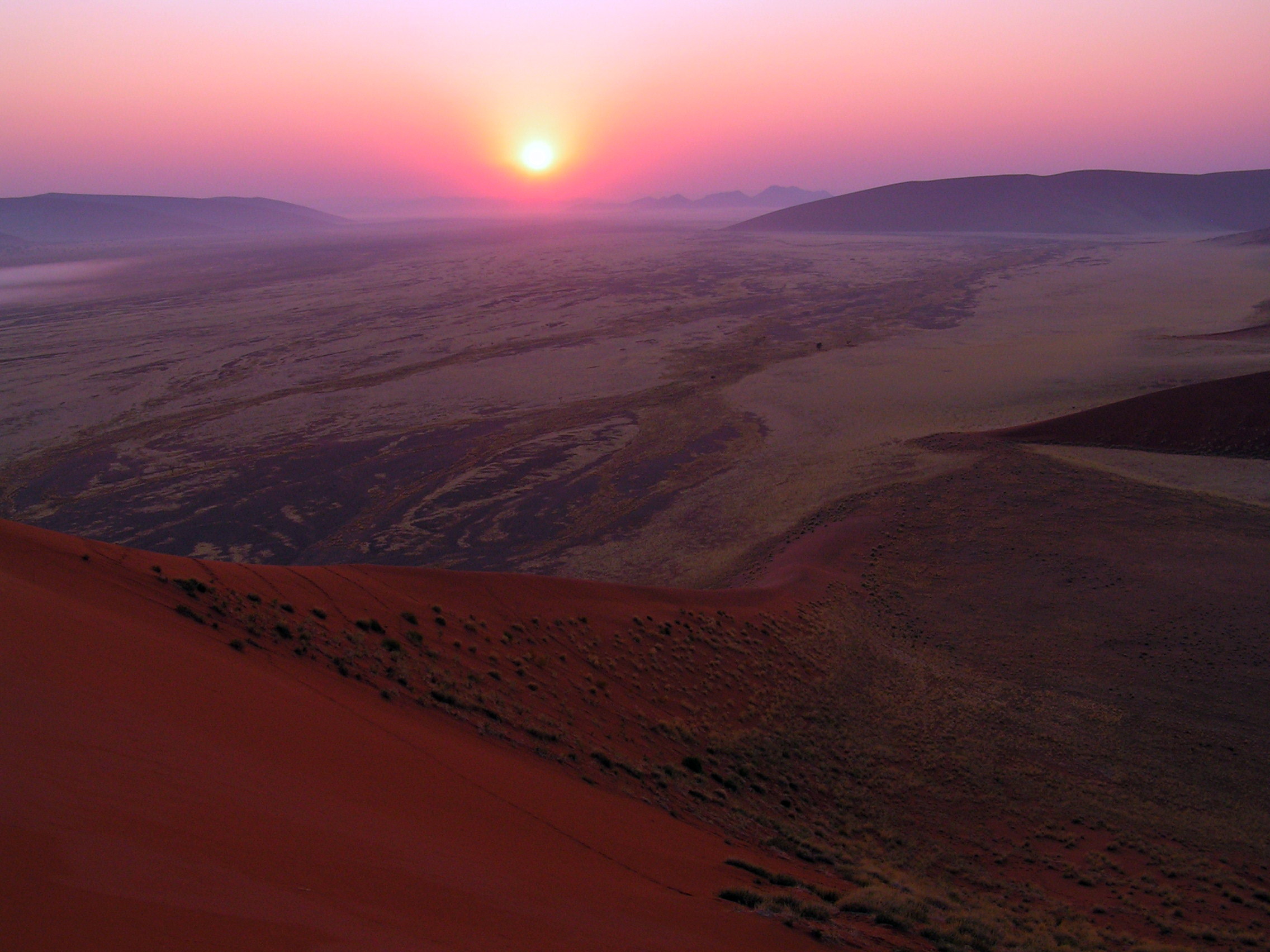 Along the Swokop River was a strange and bare landscape called the Moon Landscape. Soft stones had been eroded by the river leaving behind exposed layers of hard rocks. At one spot we walked around some boulder rocks. I was surprised to find black fragments of dried lichens attached to the surfaces. When water is sprinkled onto them, like magic, the foliage moved and crackling sound emerged. From shades pale green to bright green, with black under surface. Looking more closely, there seem to be many types around. The desert is not inert at all. A black ridge of dolerite formed on the backbone of the mountains stretched far. This hard rock had remained as erosion had removed the soft rocks. We continued further on the desert sand roads to the witness a rare plant – Welwitschia mirabilis. These plants are unique to the Namib. Only two leaves are produced in its entire life. As they grow they twist and curl and the edges eventually tear. Its survival is remarkable. Besides the harsh environment, man is assisting its unfortunate decimation. The male and female plants were in flower at this time. The plant also provided a home to a variety of beetles including the tok-tokkie and other colorful insects. In the open planes, wires from telegraph pole stretched to the horizon. Tiny spots of fungus covered vast areas of the arid surface . It is refreshing to witness that the harshest deserts managed to support life in a delicate environment.