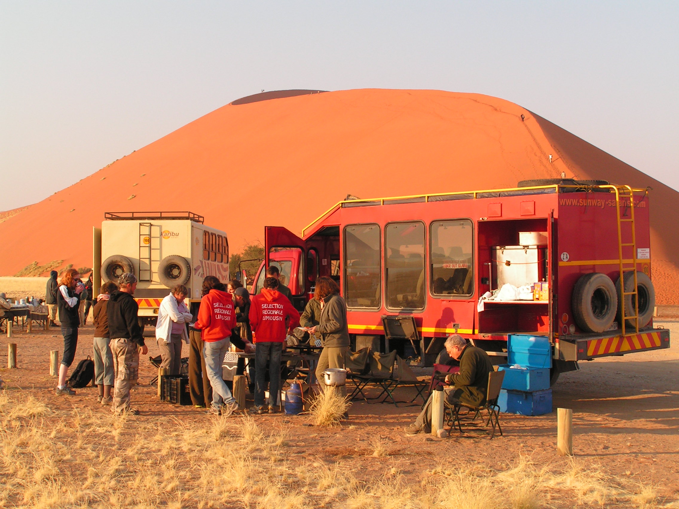 Back in town, I wandered along the coast and came across a group of Himba people making a living selling handicraft and souvenirs under a palm tree. The women had their bodies painted ochre and butter dye. They adorned many jewelries and the hair platted in many patterns. They had chosen to live their traditional way. Namibia is made up many ethnic groups but all seemed get along. Nearby was another local tribal market. I met our guide Chris. The truck had not been repaired yet!