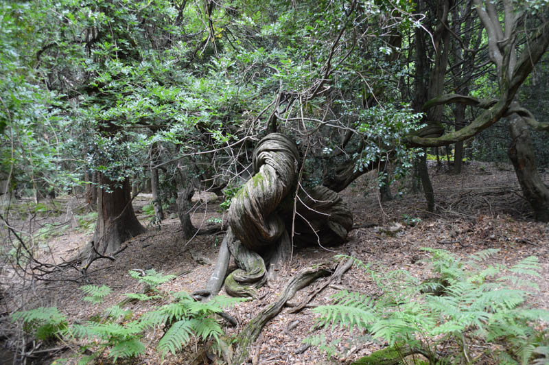 Along the path, a tree, twisted trunk with spreading buttress roots caught my eye. It was exceptionally captivating both in structure and form. The ground was bare apart from a few ferns. Such is the natural environment here. Maples and a variety of trees, both young and old, occupied this cool part of the forest.