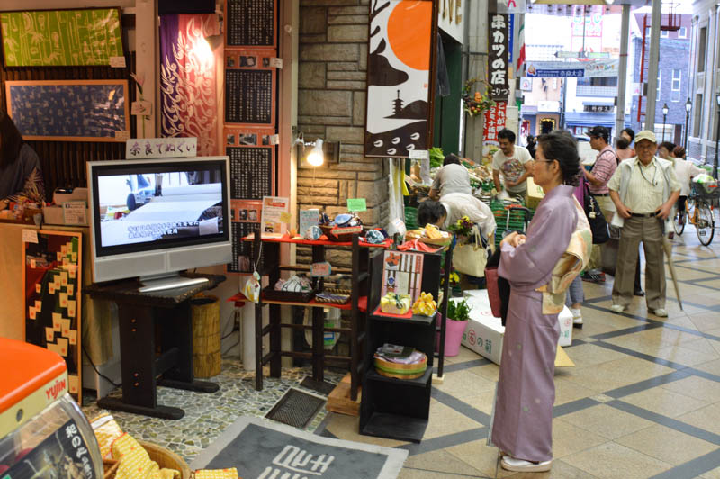 Beautiful kimonos and traditional cloths were displayed behind glass windows. Between these retail shops, there are numerous restaurants and eateries. It is a delightful place to people watch as well.