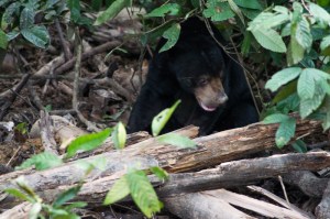 Close to the Orangutan Center is the Bornean Sun Bear Conservation Center. Malayan sun bear are the smallest bears in the world. Again, like in the orangutan center, it is about rehabilitation, reintroduction and education. Most bears are brought into the center escaping capture and hunting. Poaching is a major concern. The bears are in an enlarged enclosure and watching them in a ‘natural’ environment is great. They seem to get on with their normal business – foraging for food. Magnificent animals though.