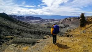 This is a loop track which can start from Whakapapa either clockwise (as described below) or counter clockwise. Furthermore, you can start the track from Mangatepopo Hut (dropped off by transport) and complete this circuit in two or three days. You can also start from Mangatepopo Hut to do the fantastic one day Tongariro Crossing.  Please see Doc Tongariro Crossing.  Alternatively, do consider the quieter one day Hiking the Pouakai Crossing Track.