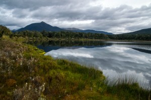There was another 1.15 hours to Rainbow Reach. It was 0835. The trek soon exited the forest into a wetland – Amoeboid Mire ( an interesting and new word for me). It is a bog dominated with sphagnum moss and a variety of shrubs. A board walk took us towards the large tarn (pool of water) in the middle of a mire (or marsh). Part of the Lord of the Rings was short here – the Dead Marshes!