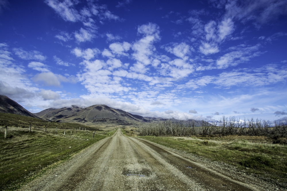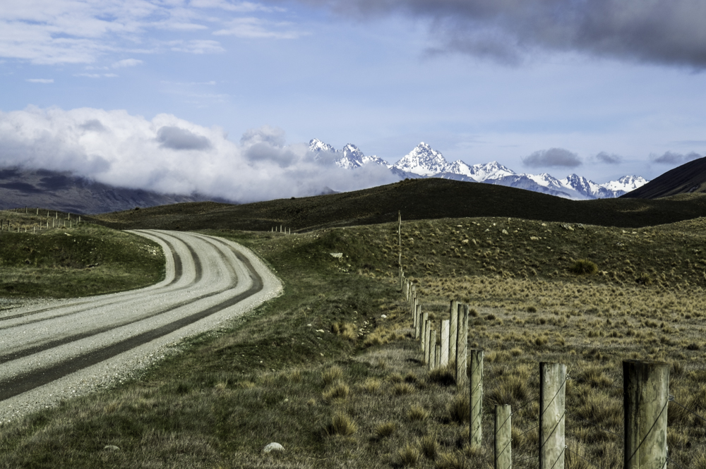 We left Twizel on Highway 8 in wet and hazy weather. All views of the Alps and Lake Pukaki vanished behind a curtain of gray wall. From our very comfortable lodge in Twizel, we opted for the YHA located in the center of town.