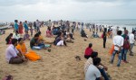 This evening I headed to a popular spot – Marina Beach. A metro train from Mylapore brought me directly to Marina Beach. Interestingly, these trains have no doors. It is great with the wind cooling the insides but disregarded health and safety. The beach was crowded. There were a few eateries and a few playground-  type activities. Flies seem to sit on all food and that put me off from trying any. Both young, elderly and families sat or wandered on the beach. Swimming Indian style- go in dressed as you were! A street food dinner at Mylapore – thosai pizza!