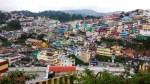 I caught a bus to Kotagiri town. Strangely, the weather dramatically changed from persistent wet weather to dry and sunny. The road is dotted with colourful and picturesque villages and tea plantations. Tea pickers were busy harvesting. In some places, the smell of tea brewing wafted through the air. I wished I could stop to capture some pictures of these quaint villages. In some villages, the colours were matched and in some houses were arranged (designed) as containers with advertisements on them. All nestled in emerald green tea plants. Kotagiri (1847m) is the hub in these mountains and is the oldest hill station in the Nilgiri Mountains. As with hill towns, just over the main dusty road across the bus station, the land drops into a valley. Homes and tea plantations flourished. It is fresh and green here. My destination, however, is another 20km away. The road became narrower as my local bus driver swerved the bus to avoid domesticated animals and traffic. With him keeping an eye on the road, I savoured the wonderful valley, colourful villages and stunning mountain views.
