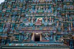 One of the highlights of travelling in Tamil Nadu is its majestic ancient temples. Some are more revered that others. One such temple is the 1600 years old Madurai Meenakshi Temple. The main shrine is Meenakshi, an avatar of Parvati – consort of Shiva. It is a leafy area and the temple is enclosed by walls. I approached the temple through a shopping hall “puthu mandapam”. Its towers soar into the cloudy sky. Some over fifteen stories high. There are fourteen “gopuras” in this temple complex. All carved with myriad of gods, goddesses and animals. It is totally enclosed with high walls and towers at four cardinal points. It was crowded, and that is expected. However, tight security was highly visible. All bags, camera and cell phones were prohibited but stored away.