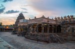 Light was fading fast. On the southern side, images of horses drawn chariots with wheels decorated the steps alongside elephants supporting a small pillared mandapam. The interior, black granite stones as pillars and ceilings. Like all temples, they are also intricately carved. A great place to sit, perhaps meditate or like me awed by the creations thousands of years ago. Certainly bewildered how it was constructed. Then in awe of its magnificence. Furthermore, this temple is not a museum piece but functional temple – a living museum piece indeed.