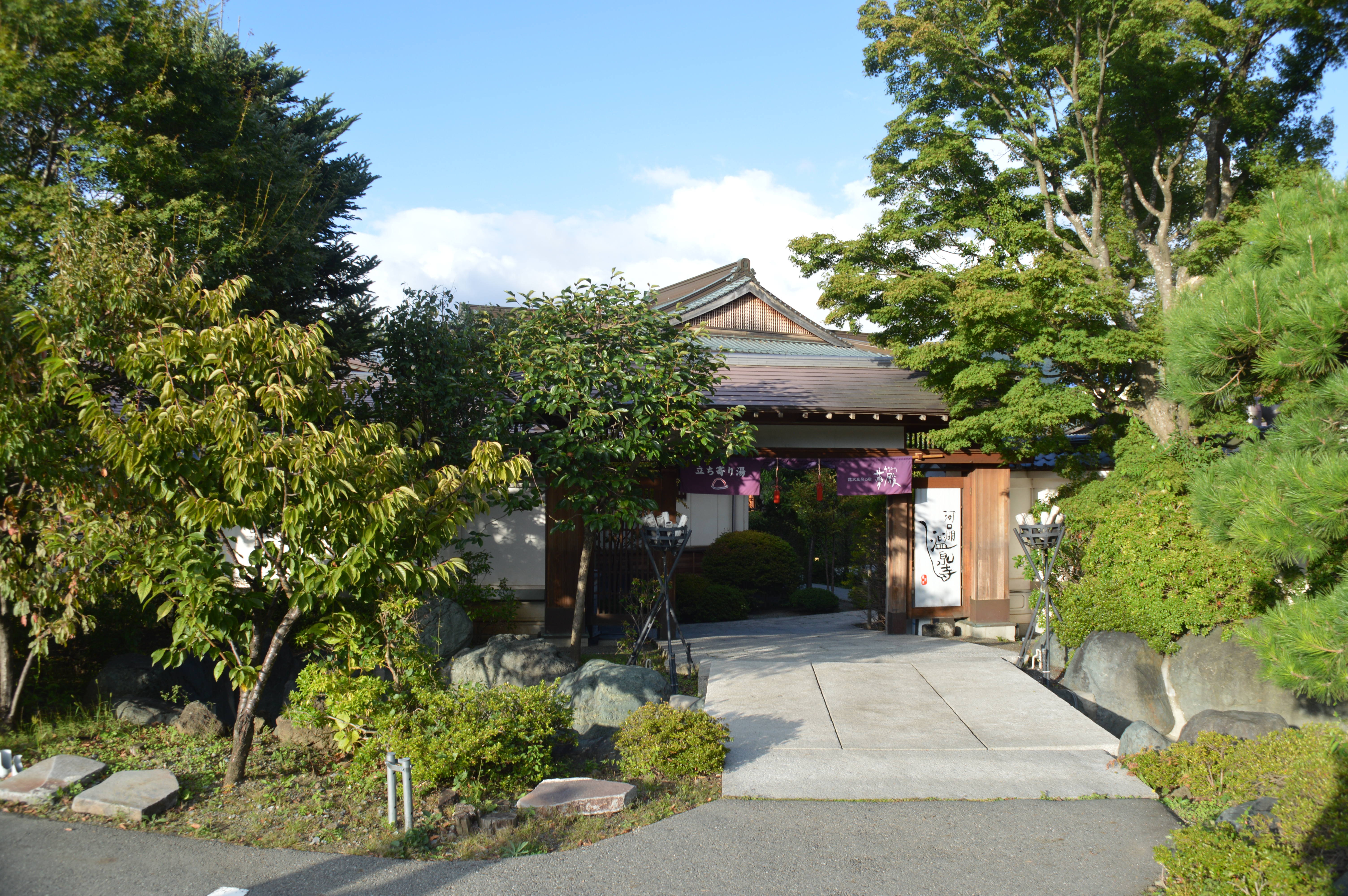 My first was at Kawaguchiko. After the long accent and decent on Fujisan, it was only appropriate that I soak this battered old body in a nice hot spring. Near to our hostel is a five star ryokan, Fuji Onsenji Yumedono, which offered its “onsen” facilities at ¥900 (discounted rate). The entrance is landscaped with dense vegetation and wooden buildings. The narrow walkway with lanterns led to a reception hall. First, remove the shoes/slippers and slip on an indoor footwear which were all neatly arranged facing inwards. Here the “onsen” is gender separated with large red (women, “Onnayu”) and blue (men, ” Otokoyu”) “noren” , curtains with a ‘yu’ symbol. Then, to the changing room, “Datsuijo”. There are strict etiquettes’ to follow in an “onsen” experience. Removed all my clothing and left them in a tray. Entered the hot pool (this was an indoor pool). It was steamy with a few people around. There are a few taps with basins and stools along a wall. Here, it is required that one takes a bath, completely scrubbed with soap and washed down (seated, I might add). Now, I entered the hot pool. It was certain HOT! The hot shower did help to acclimatise to the hot spring water. Clothing’s, including towels are not allowed to touch the pool water. Gradually, my whole body was immersed in the mineral water. My body relaxed and sensual appeal of a hot bath set in. I noticed that the men around me had a small towel, “tenugui”, either on their heads or on the side. Basically, it is used to cover the genitals when out of the water. I had none.