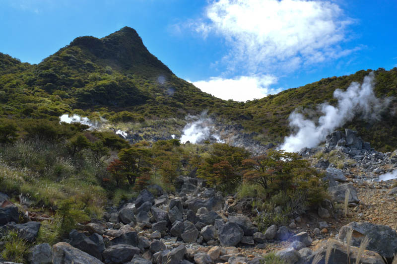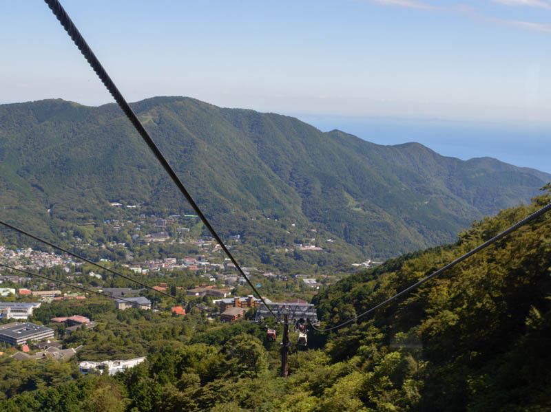 The previous day’s rain seemed to have created a sharp image of the green pine forest and the blue Lake Ashi. The air was fresh but chilly. It was a promising day to venture other parts of Hakone. We made arrangements at the hotel via a luggage transfer service to deliver our luggage to Hakone Yumoto train station. From here we walked to the pier and caught the Hakone Ropeway to Ōwakudani. Hakone is a popular tourist site, not only for views of Fuji but renown for natural hot springs and spas. It is after all a volcanic area. It lies within the Fuji Hakone Izu National Park.