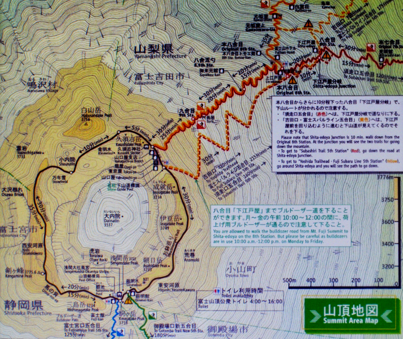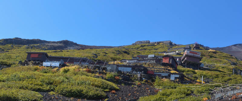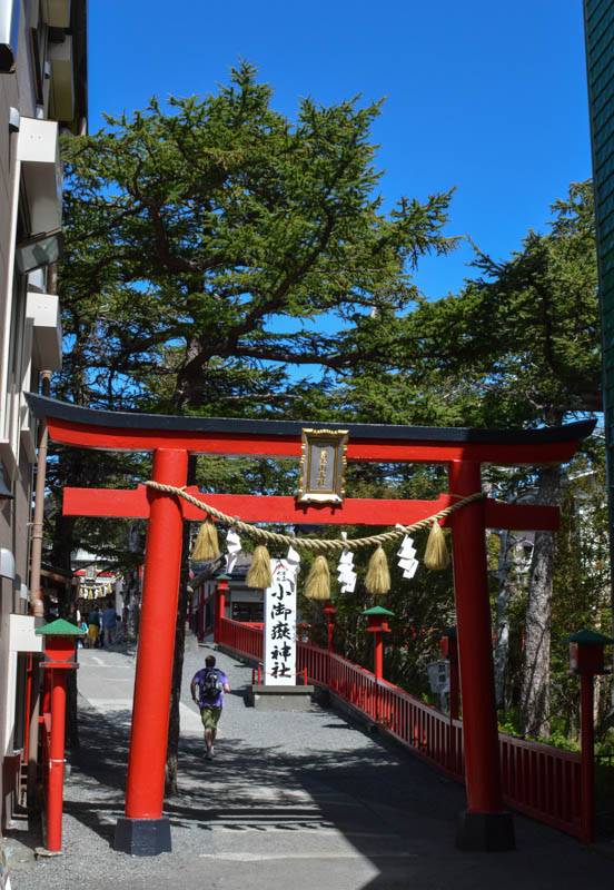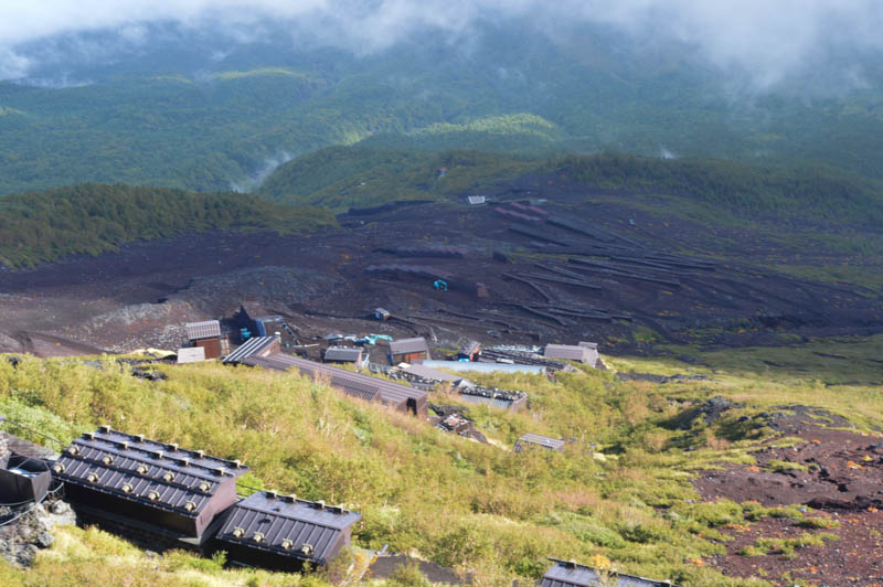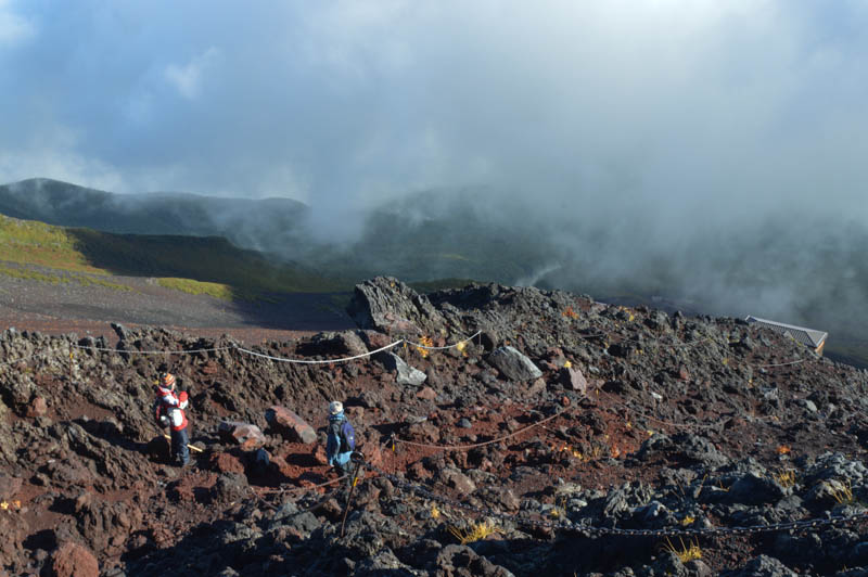 Kawaguchiko is a small town and also the starting point to the Fuji Five Lakes or Fujigoko in the Mt Fuji National Park. At the station, there were hive of activities. The day was warm and humid. No views of Mt Fuji though. We refuelled with some noodles and caught a bus to Kawaguchiko Fifth Station. It is midway as the summit is the tenth station. The easy access by road meant we saved a good five hours trek. At 2300m, it was cool with fine views of the reddish volcanic Mt Fuji’s summit. Scattered huts clung onto steep slopes. A vague trail was visible. The lowers slopes were planted with pine. A thick layer of clouds hung low below the station obstructing views of the lakes and towns dotted around Fuji’s wide base. With a quick lunch, and prayer around the nearby Komitake Shirne, we began our trek. We were excited but apprehensive. It is the off season and only one hut remained open on its last day. We left the Fifth Station, which by now had swelled with tourist and tours buses, at around 1pm. It was hot but pleasant with a blue sky. Perfect weather to walk I thought. Now this compact station was crowded with a mix of local and foreign tourist whom had arrived by the bus loads. Traffic was heavy. We were glad to leave.
