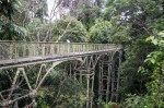 My first trek in the forest was at 1530. Unfortunately, it rained from 1500 onward making wildlife spotting challenging plus the trail slippery. With intermittent rain, Henry led us to an accessible area. We crossed a suspension bridge over the Segama River into the primary forest. DVFC sits in a region previously logged, with the road acting as a boundary between untouched and regenerating forest. The track was muddy and filled with intertwined and tangled tree roots. Leeches are present. We crossed small streams on makeshift bridges amid humid air and the strong smell of decaying leaves.
