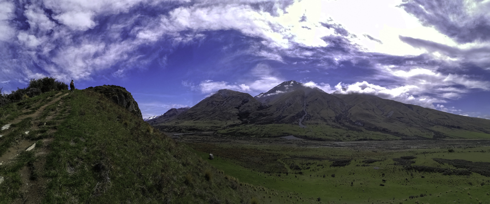 After slapping on sunblock and sandfly repellent, we started the track at 0830 along the fast flowing bluish braided Matukituki River West through Matukituki Valley, with craggy mountains on either side. The track is basically a walking acess through high country farmland – Mt Aispiring Station. It was lambing season with sheep and lambs everywhere. Within 30 minutes, we reached a suspension bridge over Mutukituki River. This 2hr easy track lead towards wonderful hanging Rob Roy Glacier. I hiked here in March this year. Liverpool Hut is 16km (5-7hrs) away.