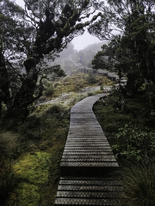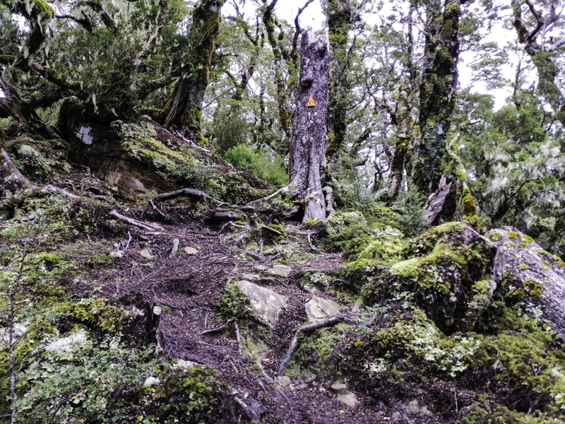 Just after Aispiring Hut, we met the warden for Liverpool and French Ridge huts. She estimated we should reach the hut by 4pm. In my mind, probably 5pm. Starting early benefited us with a long day. The relatively flat track has a gradual acent.